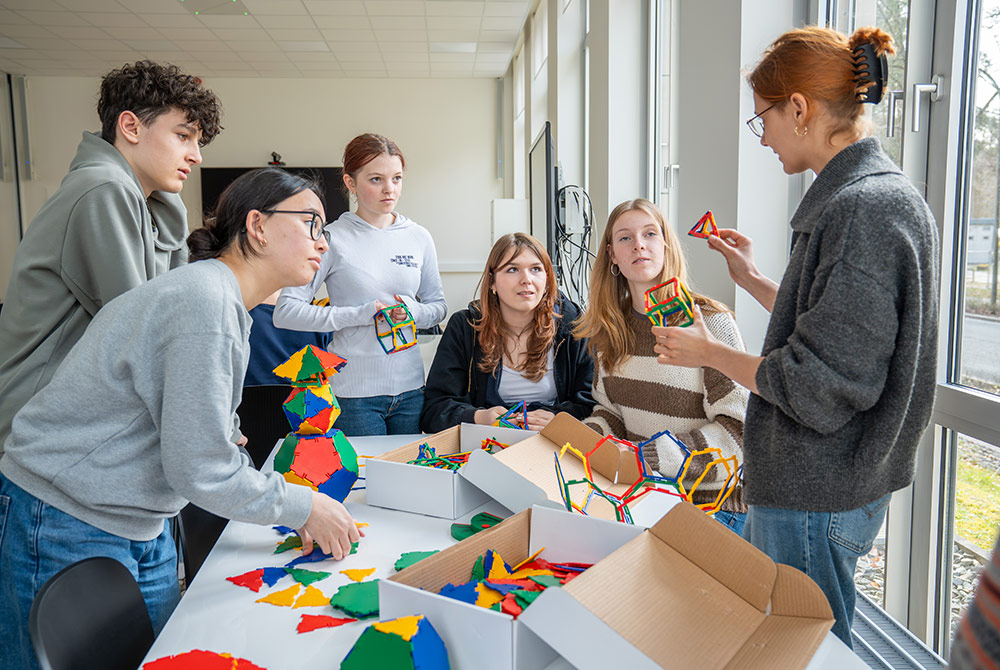 In the afternoon, the group continued at the Department of Liberal Arts and Social Sciences. The Energy Systems and Market Design research group presented key aspects of the energy transition, ranging from technological foundations to market mechanisms. At interactive stations, students were able to explore mathematical models, game theory, and applications related to energy systems and networks. The stations were organized by the Analytics and Optimization, Applied Discrete Mathematics, and Discrete Optimization research groups.